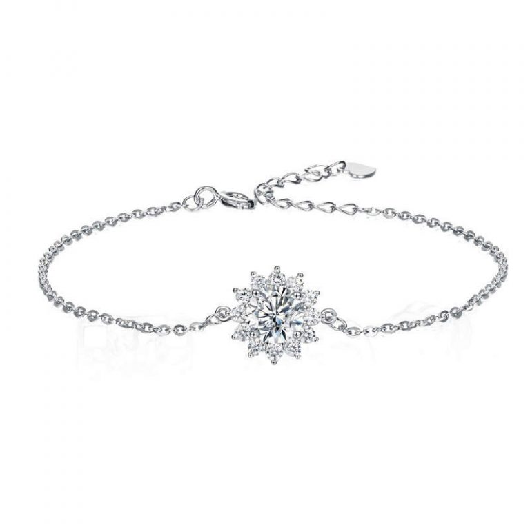Moissanite Solitaire Halo Bracelet | VVS Clarity, D-Color